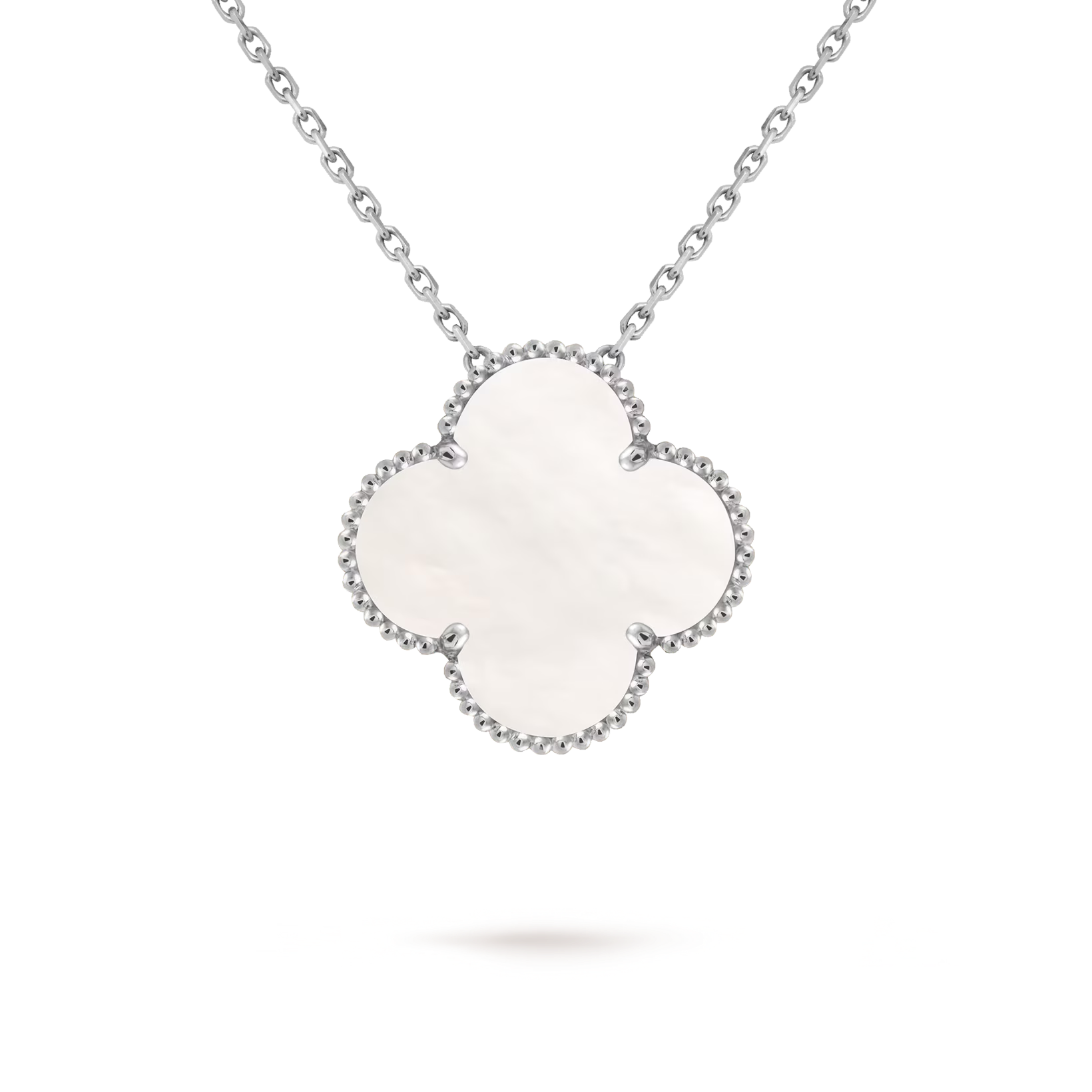 Materials 18-carat white gold, white mother-of-pearl Chain length 16.54 inches The pendant is attached to the necklace’s chain
