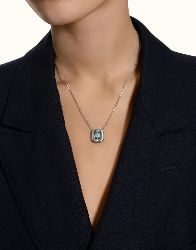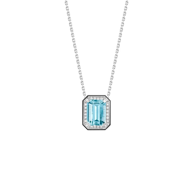 Materials 18 carats White gold, 1 emerald-cut aquamarine